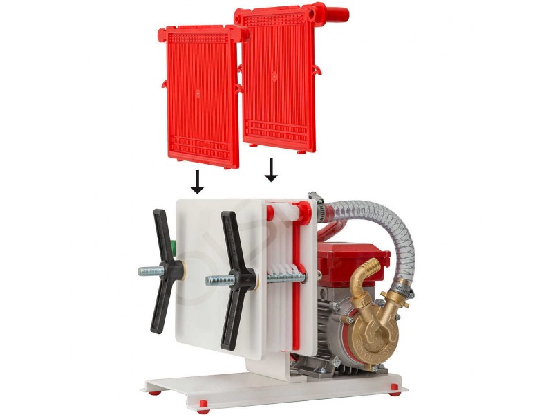 Filtru de vin 12 placi Filtrarea se face prin 12  placi filtrante 20x20 cm. Suprafață de filtrare: 0.48 m² Capacitate de filtrare: 500  litri / oră Greutate: 18 kg Putere motor: 0,5 CP Produse compatibile Colier...